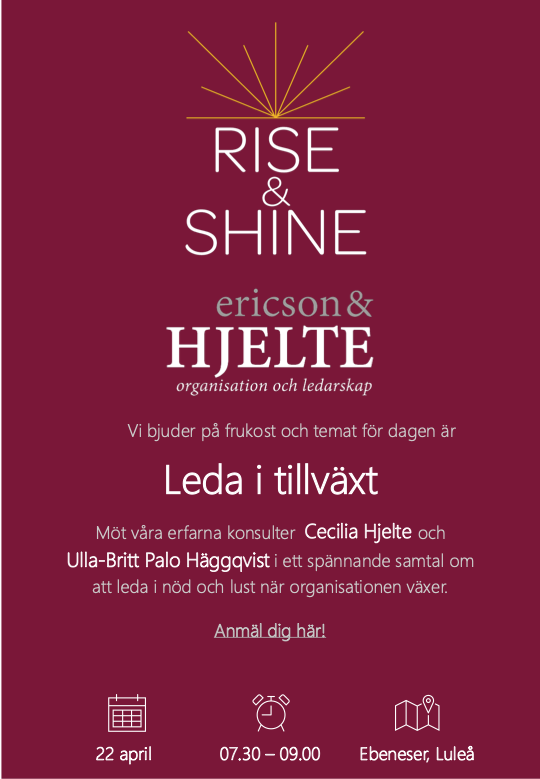 Vårsolen är tillbaka och allt vaknar till liv, nu startar en period av intensiv tillväxt. Vad passar då bättre än att ses på vårt sköna frukostmingel Rise & Shine med temat “Leda i tillväxt”.